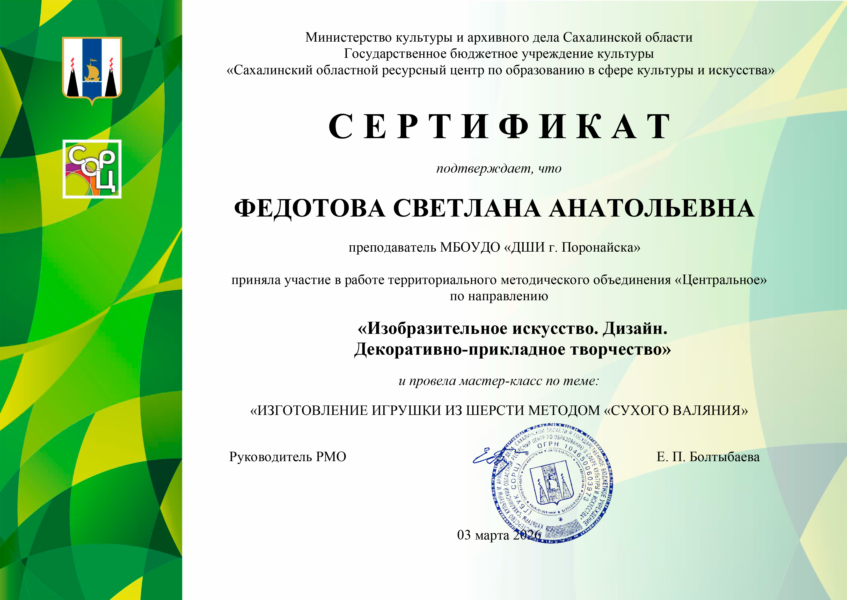 Портфолио преподавателя Федотовой С.А. МБОУДО ДШИ г. Поронайска