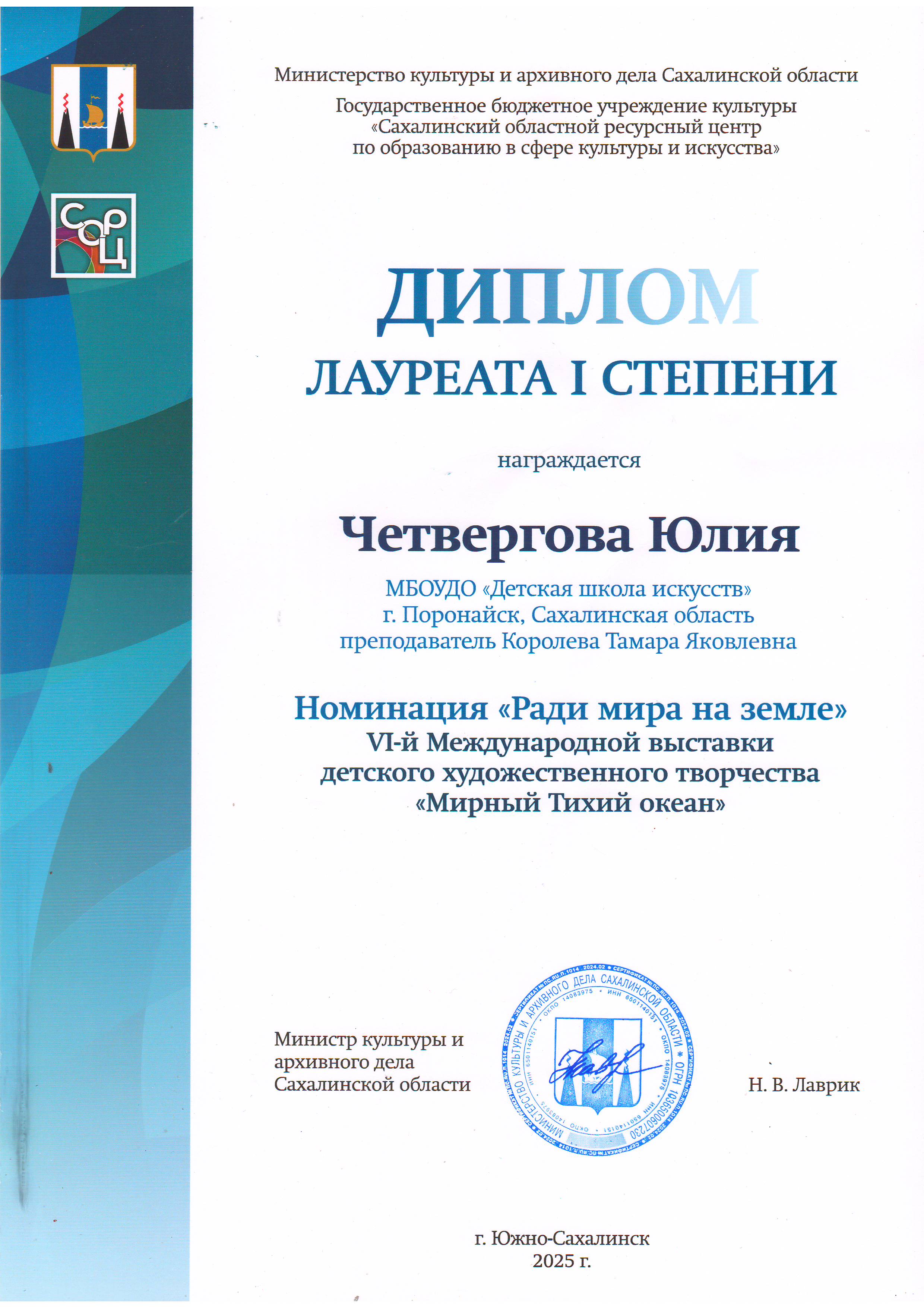 - Дектиренко Дарья. Направление - хоровое дирижирование. Специальности - дирижёр хора, преподаватель