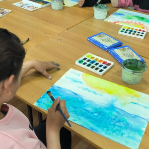 04 июня филиал ДШИ г. Поронайска посетили воспитанники ГКУ Социально-реабилитационного центра для несовершеннолетних «Надежда». Преподаватель Иксанова Екатерина Голимжановна кратко рассказала о школе и провела мастер-класс акварельной живописи «по-сырому», техника «Аля-прима». Дети изобразили морской пейзаж, экспериментируя с яркими красками и свободной техникой нанесения, что позволило им раскрыть свою творческую фантазию и почувствовать радость от процесса творчества. В ходе занятия ребята получили не только новые знания и навыки, но и положительные эмоции, а также укрепили уверенность в своих художественных способностях. В завершение мастер-класса каждый участник с гордостью представил свою работу, что стало важным шагом в их личностном росте и развитии творческого потенциала.