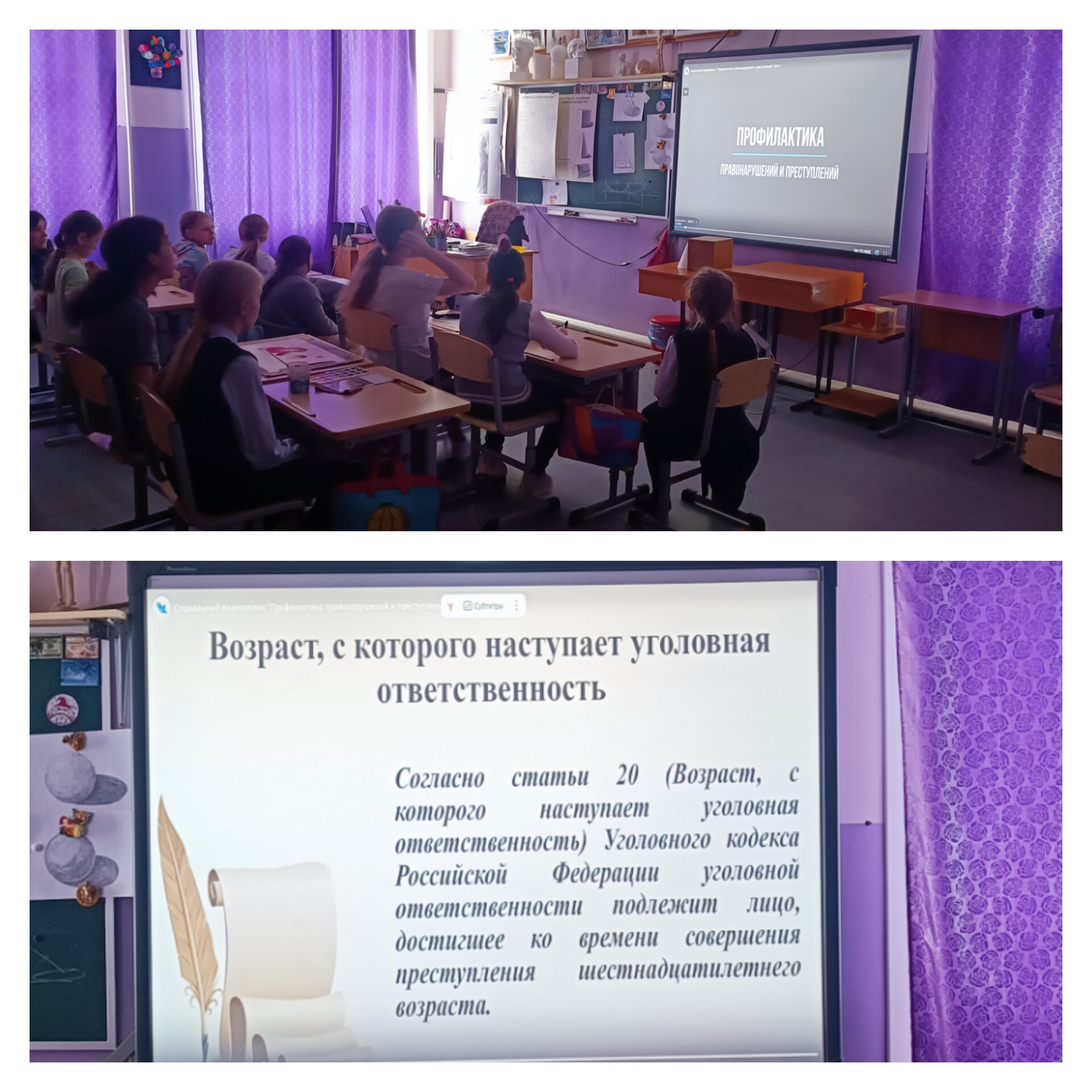 В целях профилактики подростковых правонарушений, оказания помощи учащимся по формированию негативного отношения к различным асоциальным явлениям и осознанию действий, поступках, которые могут стать причиной правонарушений или преступлений в филиале МБОУ ДО ДШИ г.Поронайска в с.Восток были проведены мероприятия с показом видеоролика «Правонарушения в мультфильмах», а также Классный час «Правонарушение и наказание».