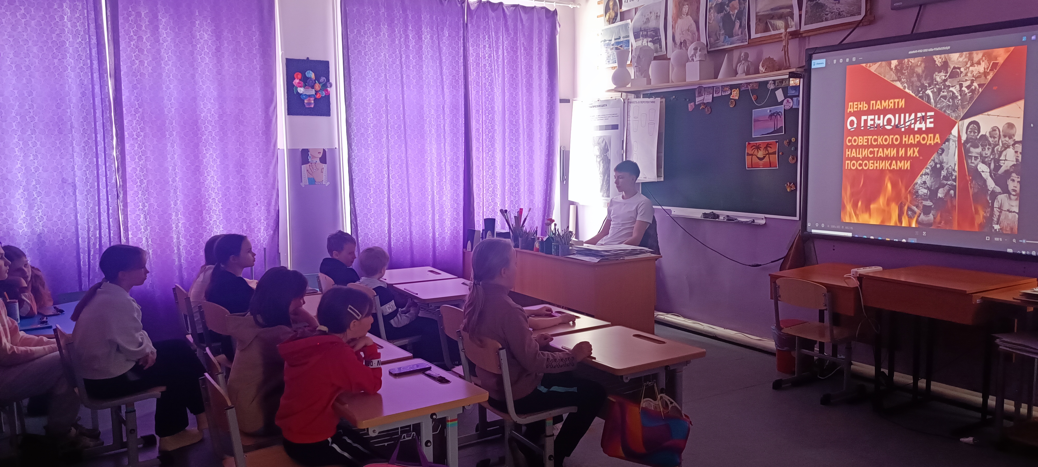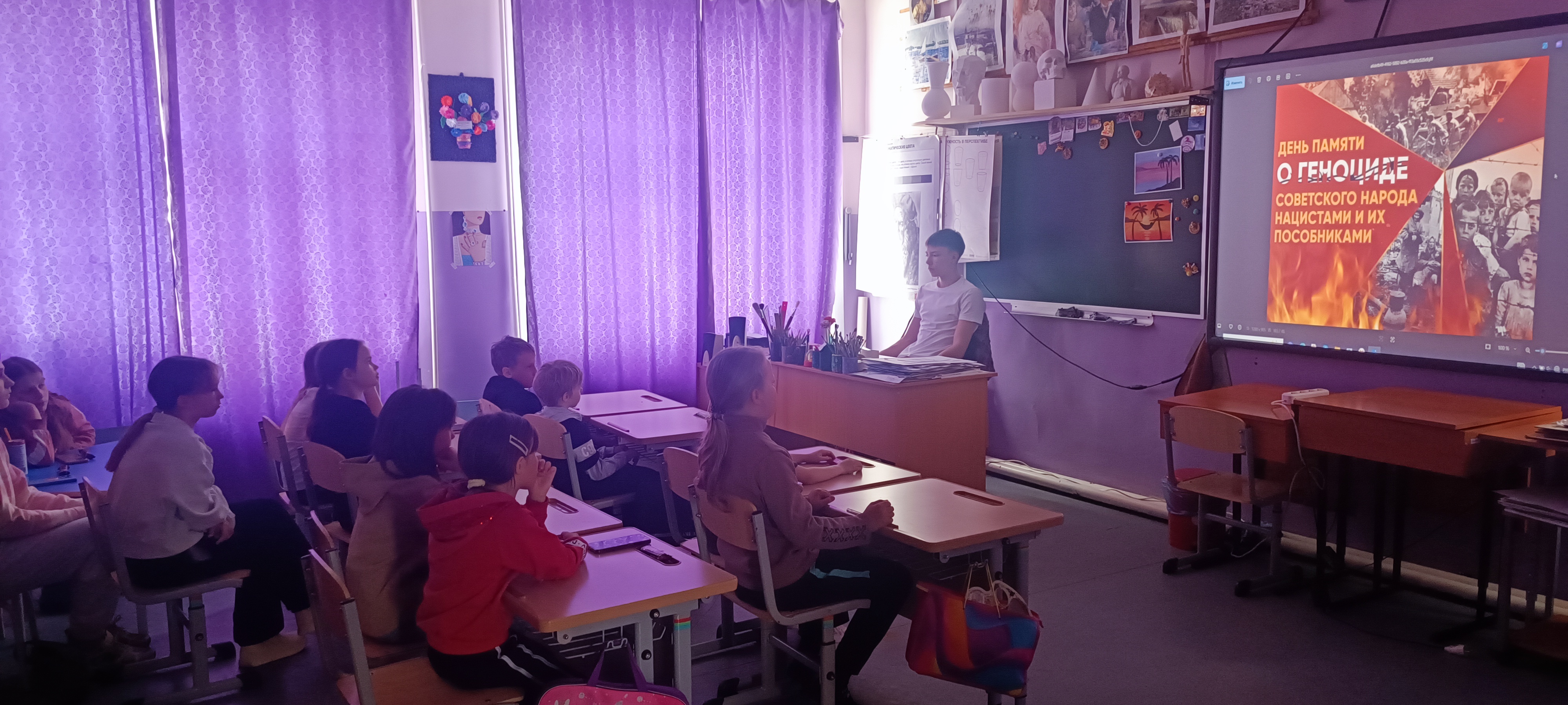 18 апреля 2026 года в филиале МБОУ ДО ДШИ г. Поронайска в с. Восток прошёл тематический классный час для обучающихся, приуроченный ко Дню памяти жертв геноцида советского народа.