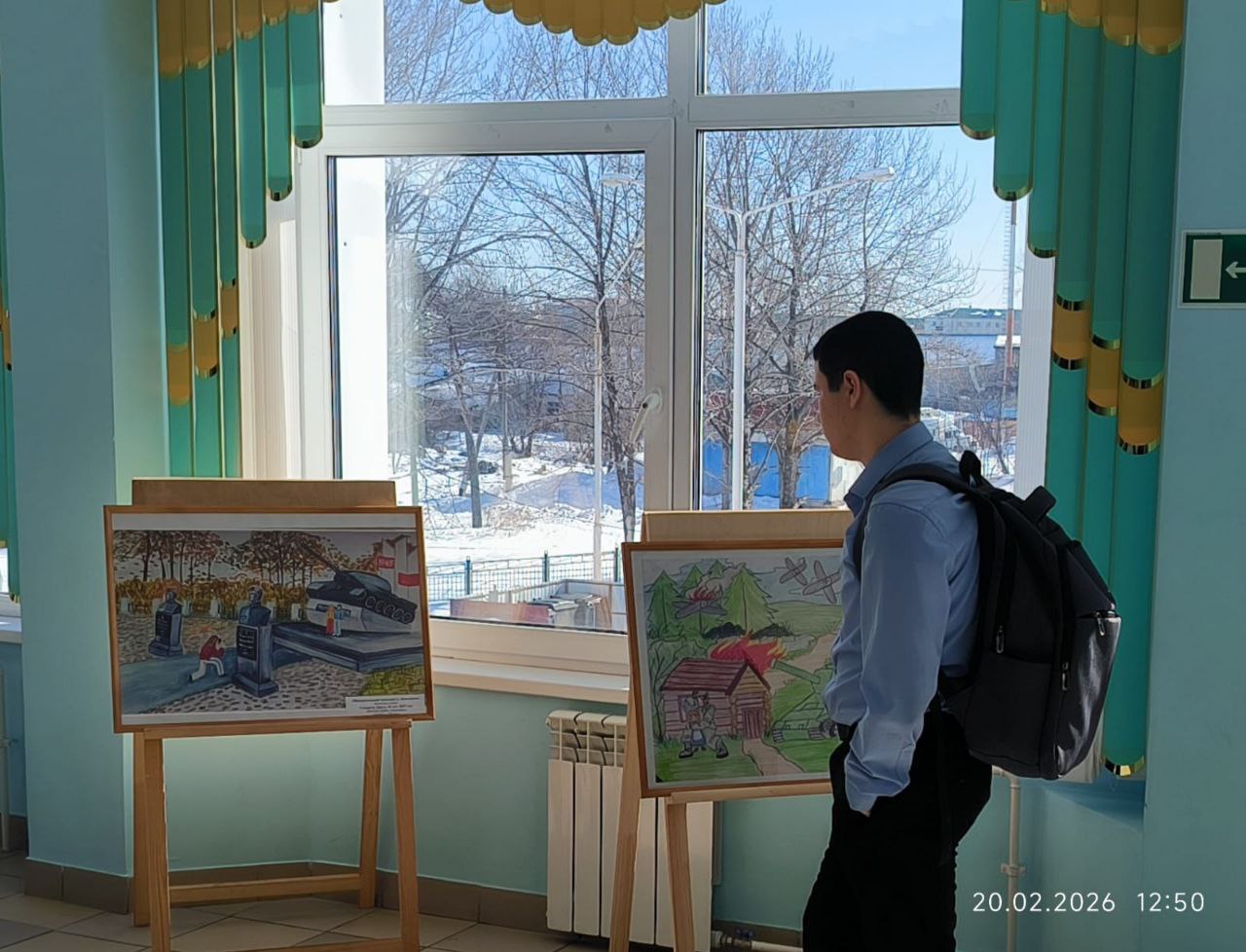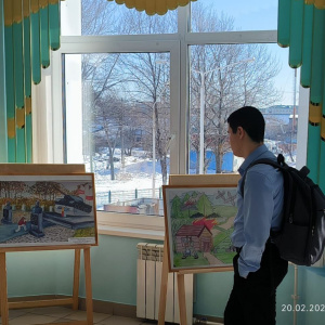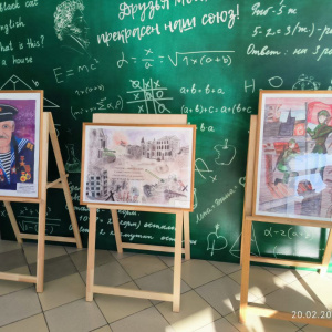 Экспозиция была приурочена к грядущему празднику мужества и чести. Юные художники представили лучшие живописные и графические работы.