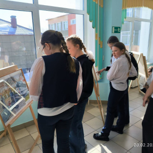 В рамках проведения концерта в СОШ №720 февраля была размещена выставка методического фонда филиала МБОУДО ДШИ г. Поронайска, посвященная великому Подвигу.