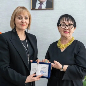 В торжественной обстановке нагрудный знак и удостоверения к почётному званию вручила лично министр культуры и архивного дела Сахалинской области – Нона Владимировна Лаврик.