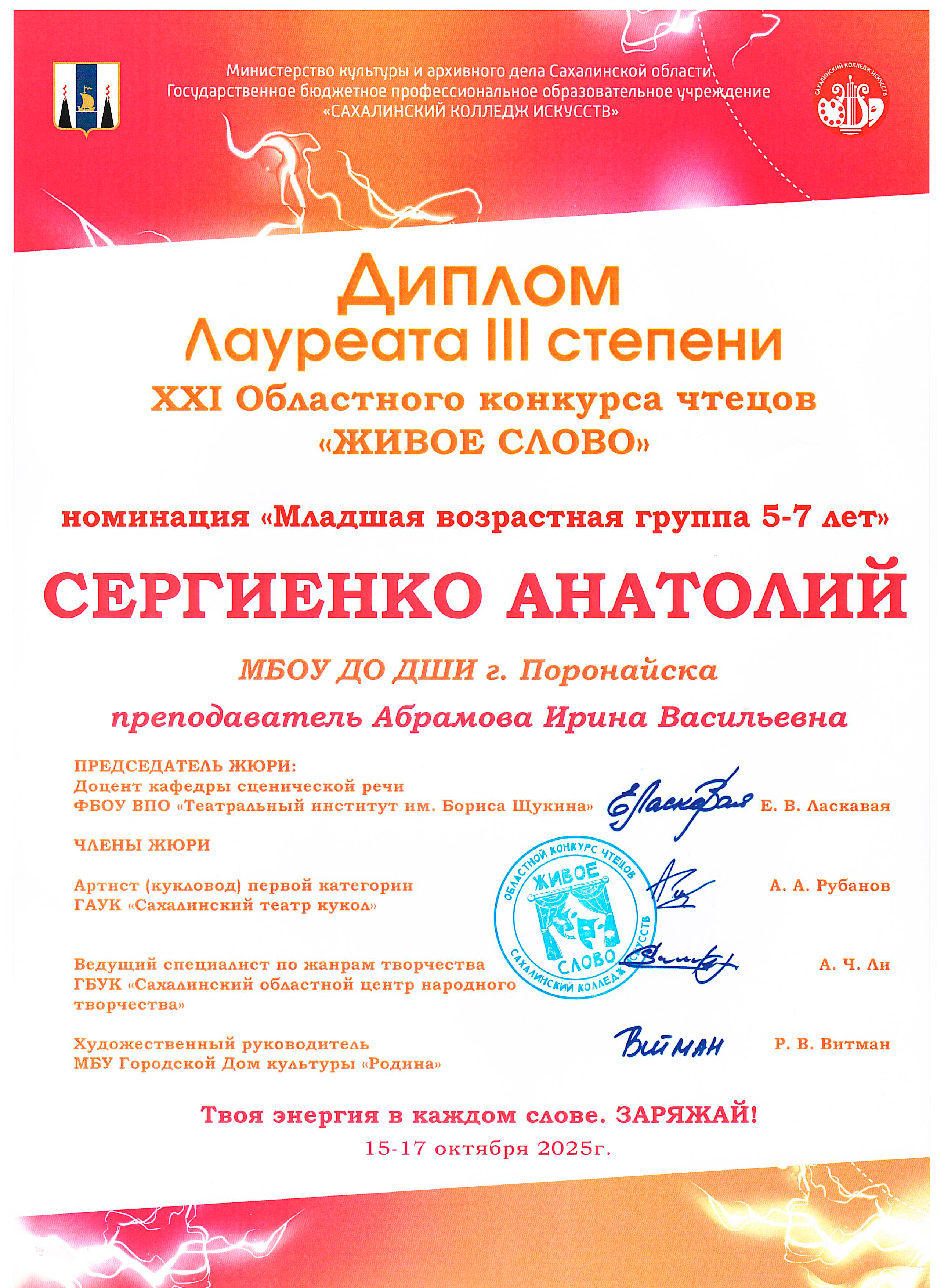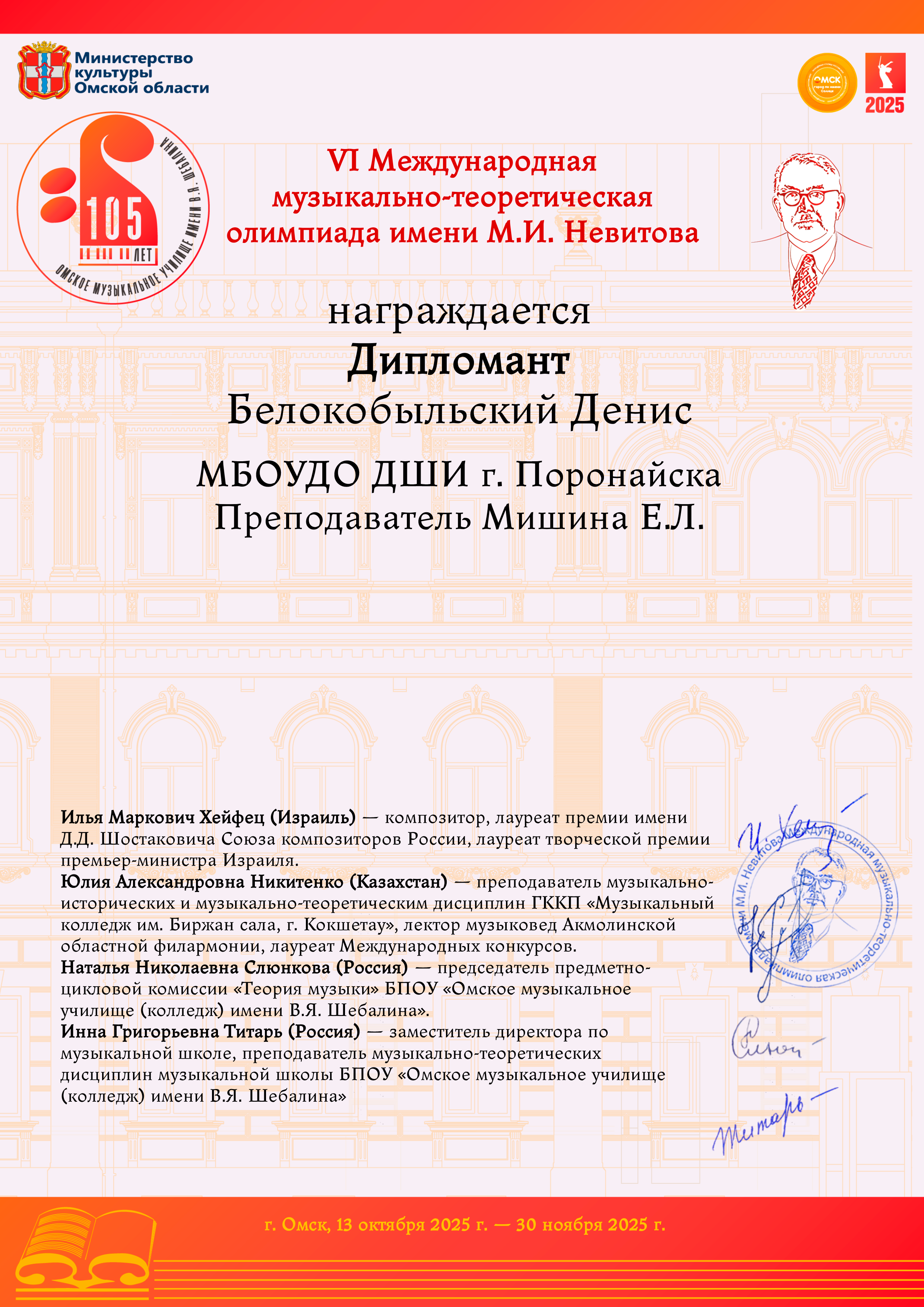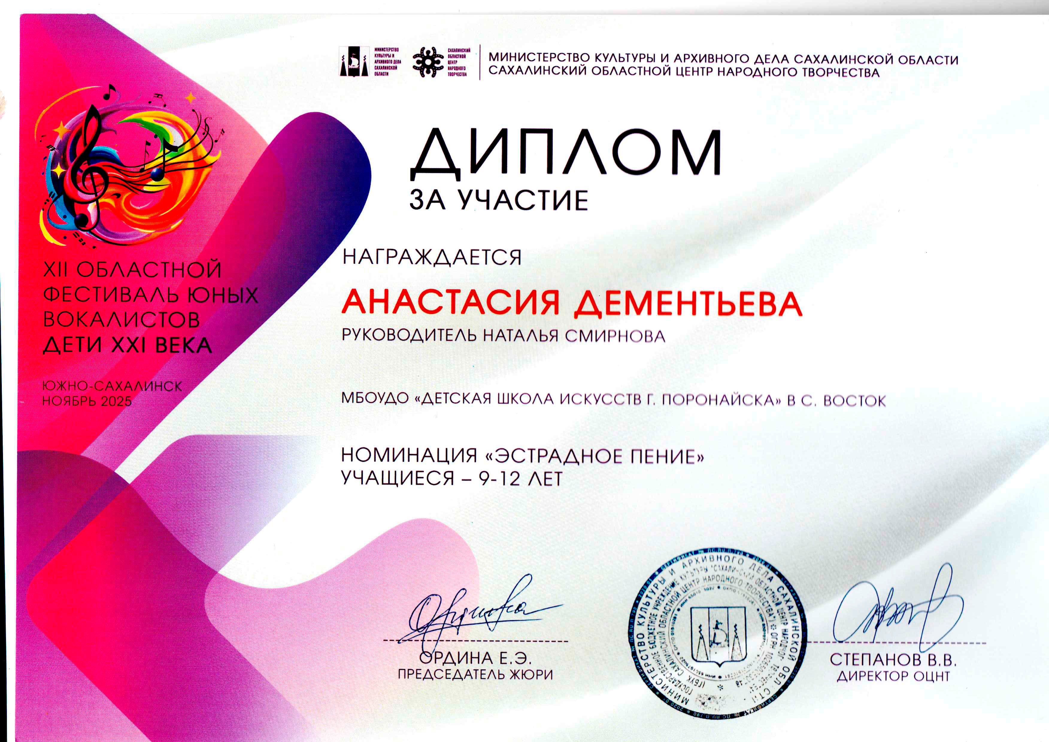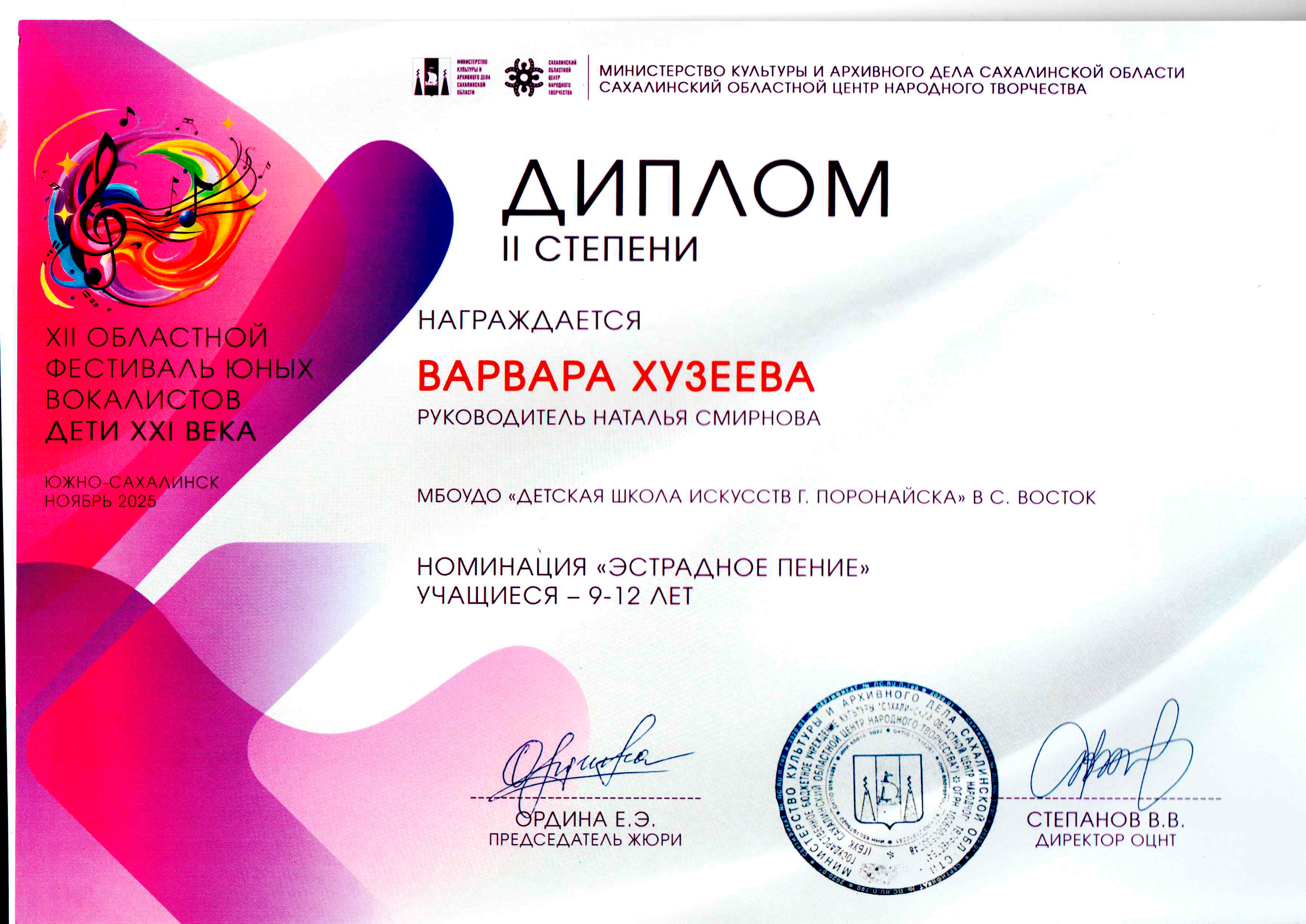 - Дектиренко Дарья. Направление - хоровое дирижирование. Специальности - дирижёр хора, преподаватель