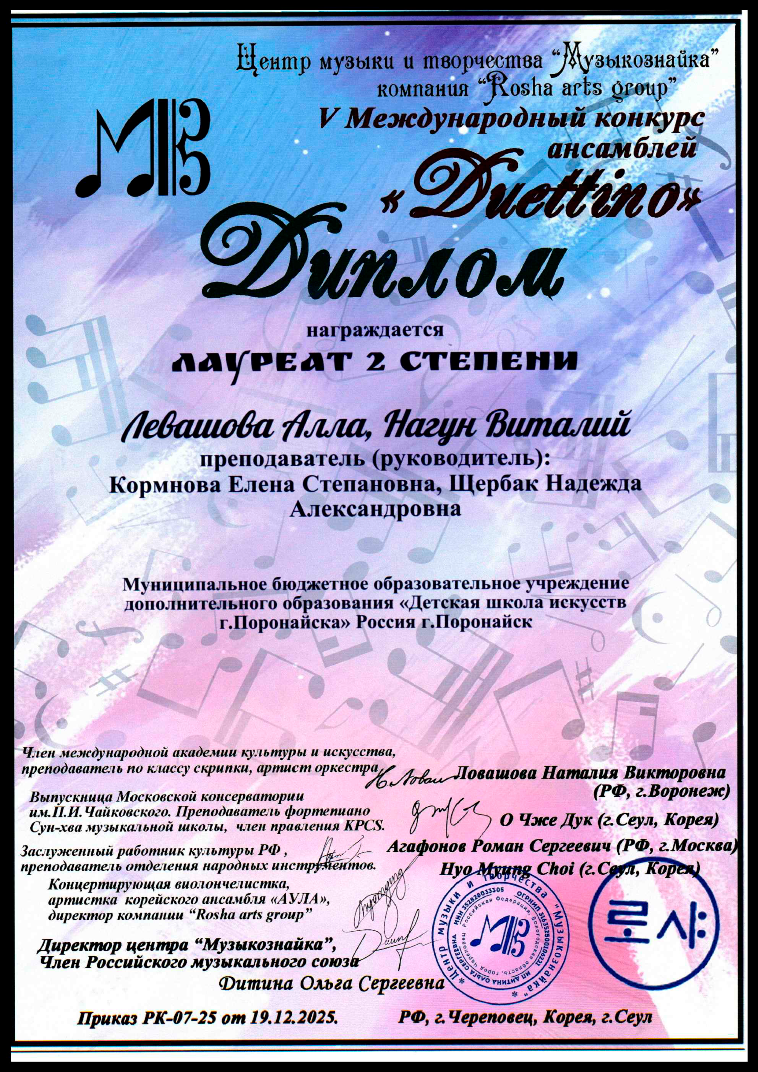 - Ансамбль скрипачей «Скерцо», руководитель Е.С. Кормнова