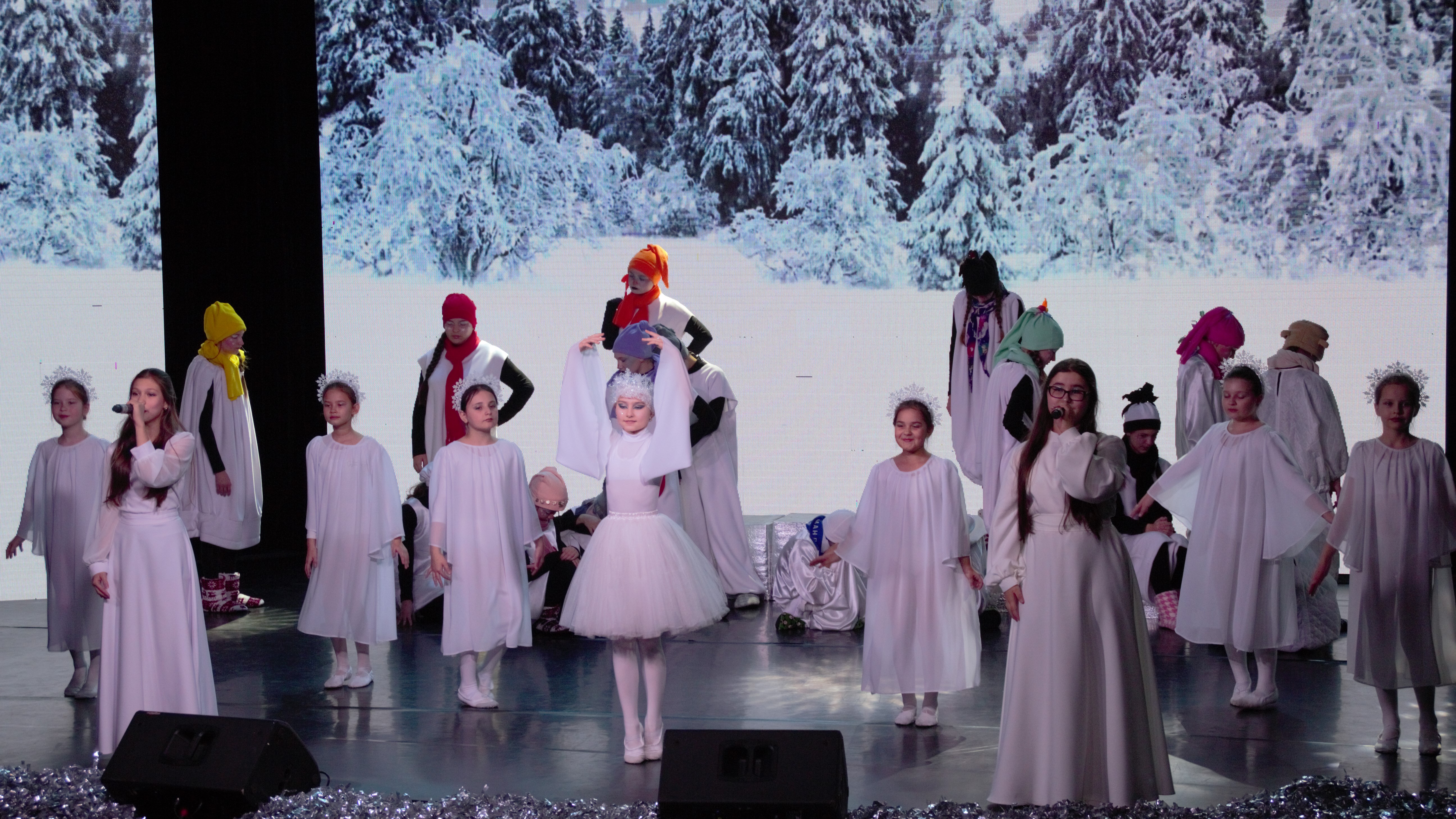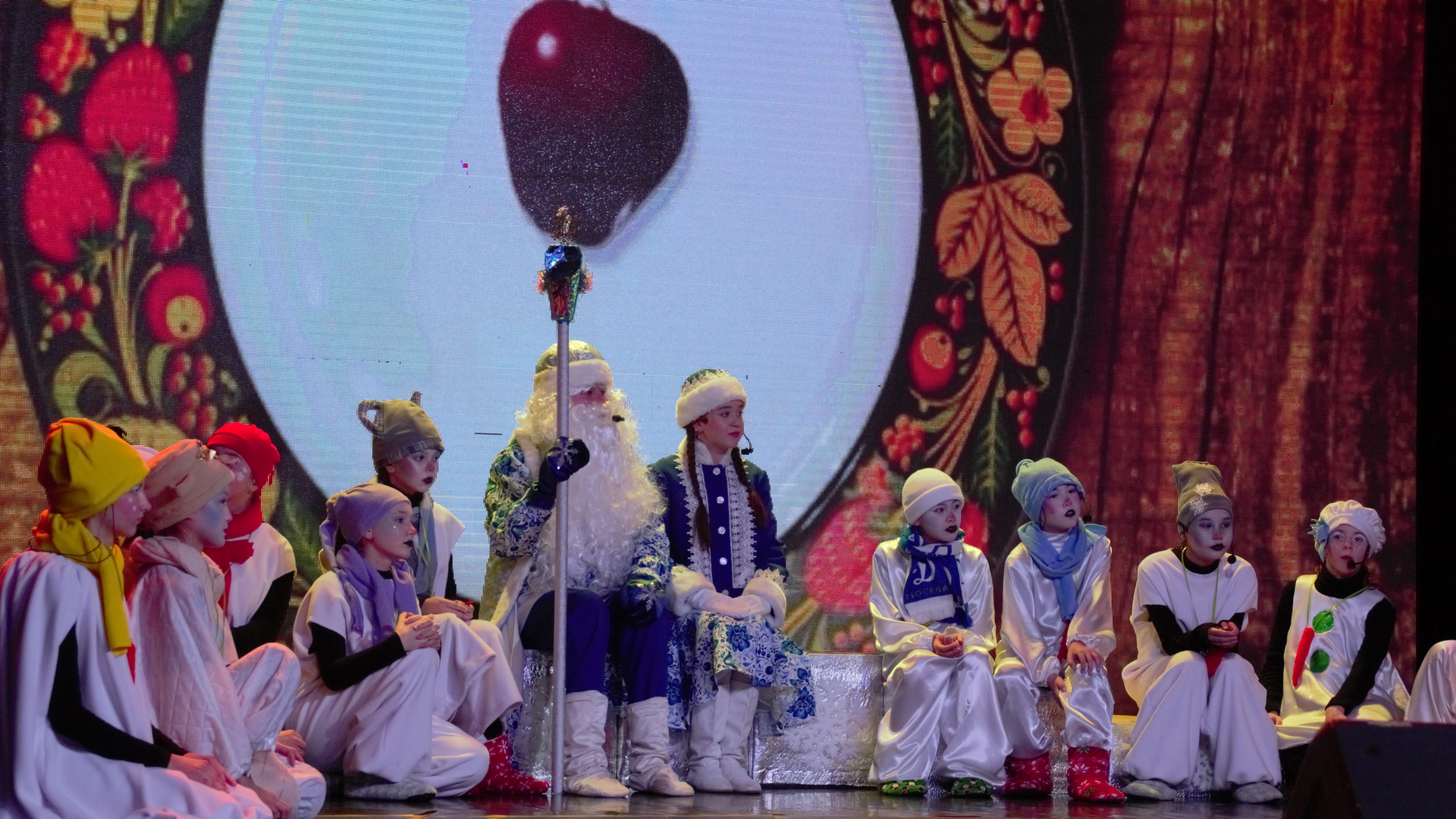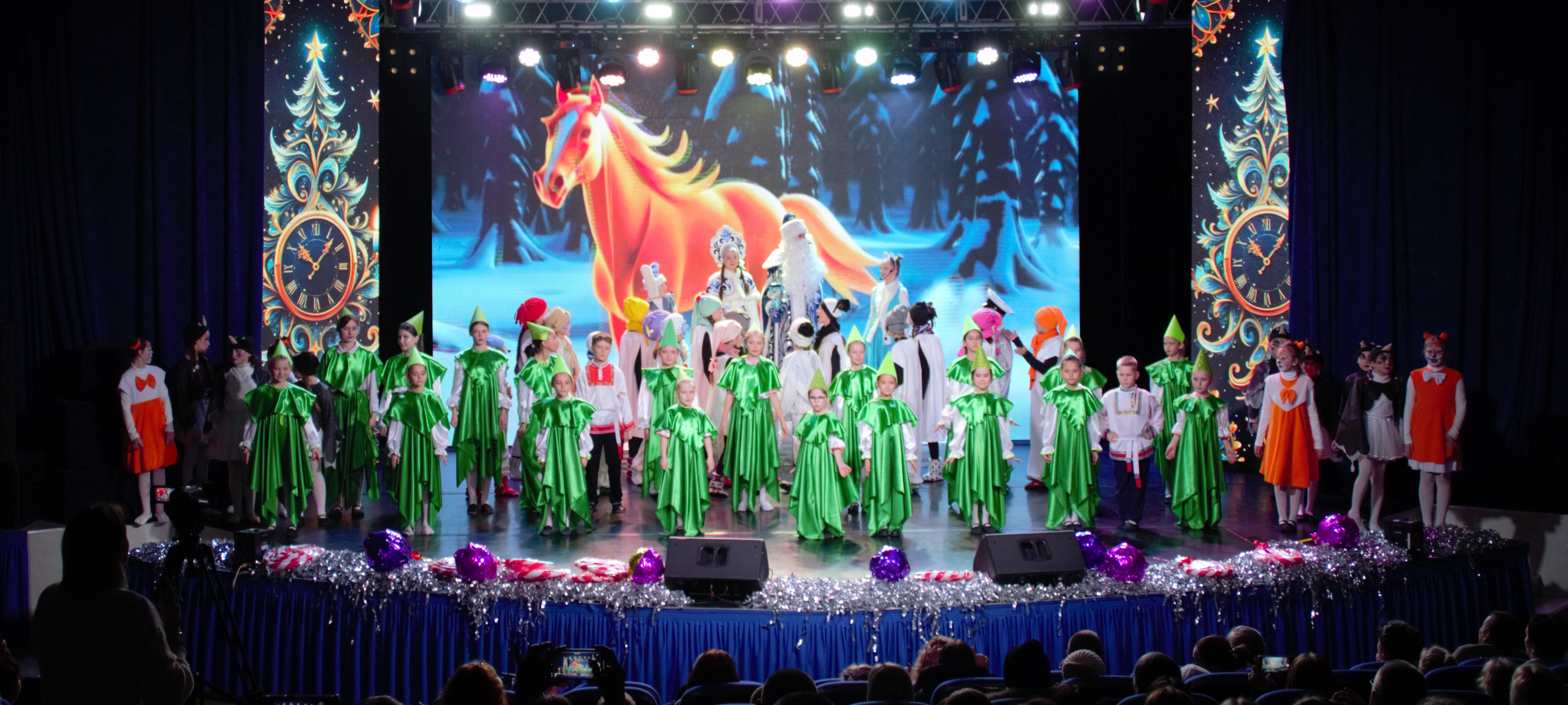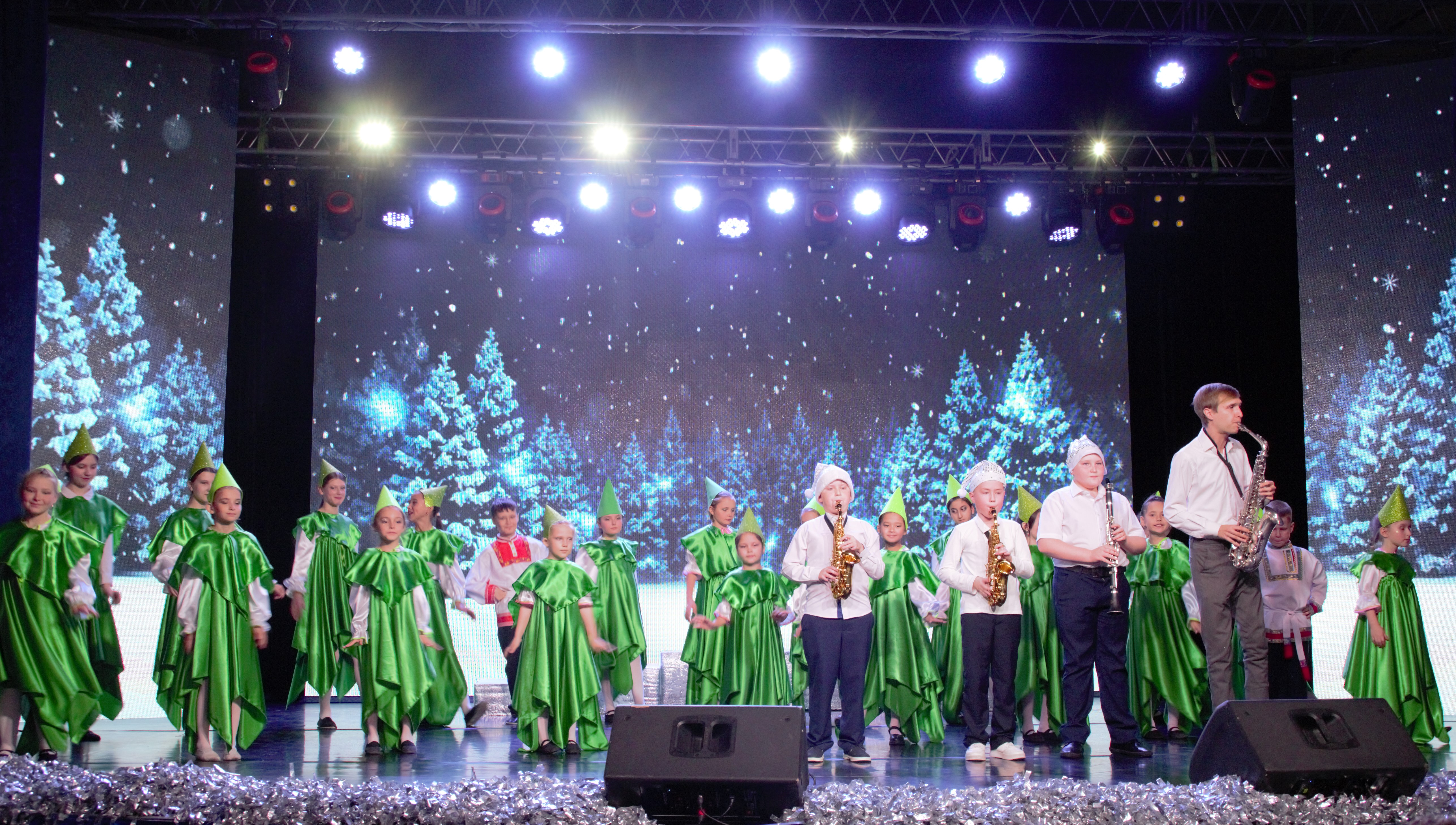 В новогоднем спектакле принимали участие: Фольклорный ансамбль «ВЕСЕЛКА» руководитель - Ткачева Ирина Валентиновна. Концертмейстер Горяевf Татьяна Вячеславовна? Вокальный ансамбль «НОТКИ» Руководитель Колотвина Наталья Ивановна, Театральный коллектив «Лето» руководитель Абрамова Ирина Васильевна, Театральный коллектив «ИГРА» руководитель Владыкина Елена Геннадьевна, Ансамбль саксофонистов- руководитель Сергеев Игорь Юрьевич.