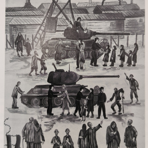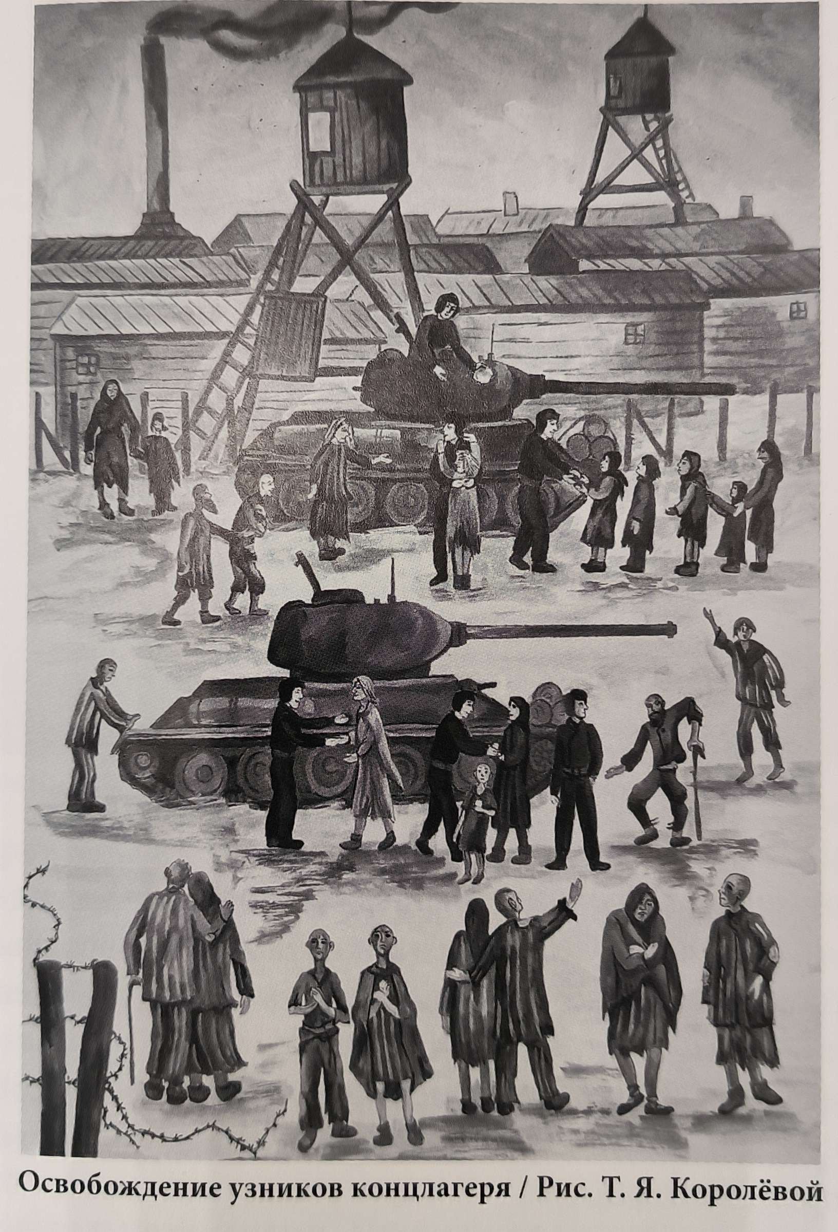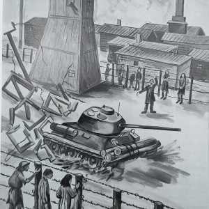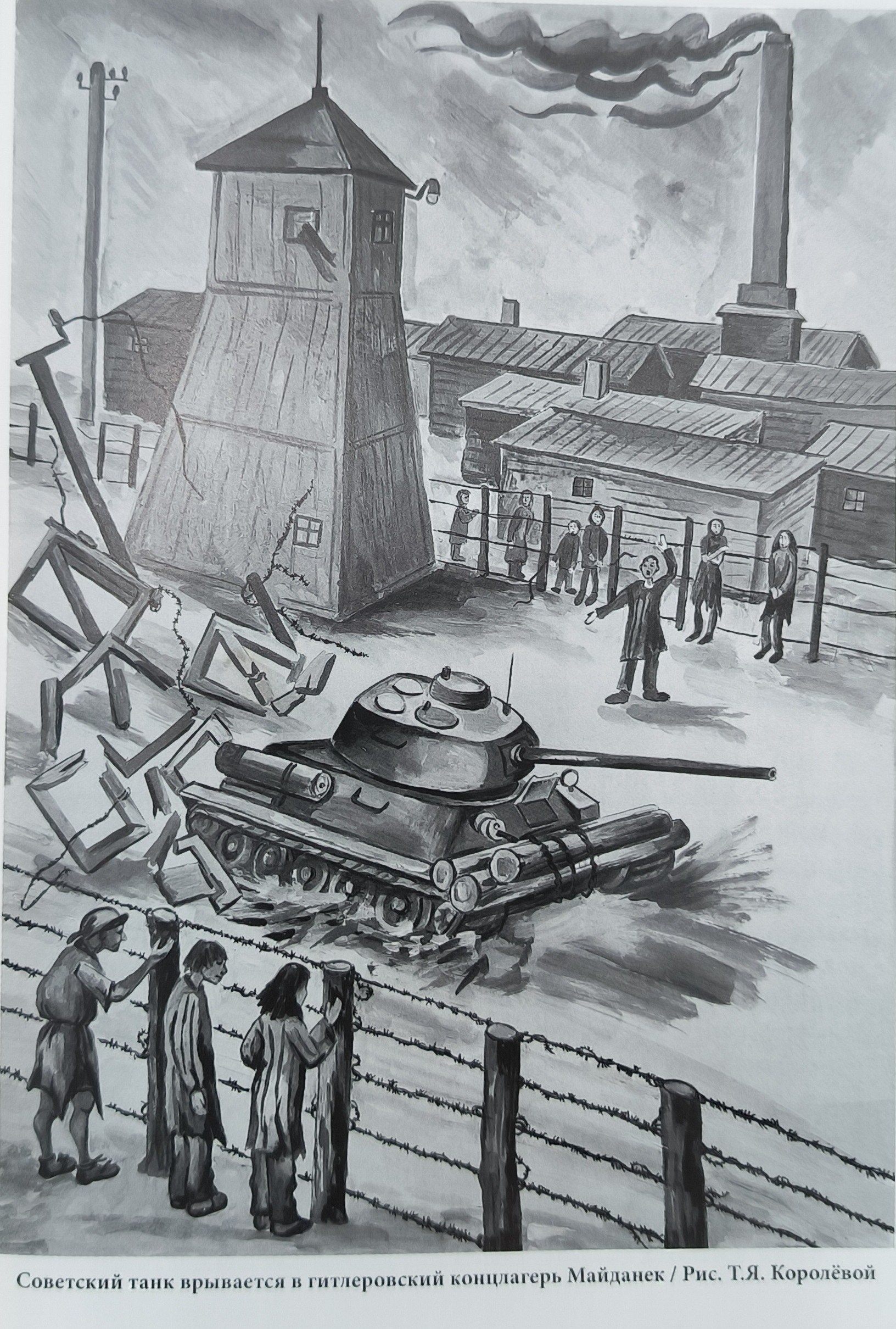 «Советский танк врывается в гитлеровский концлагерь Майданек»,