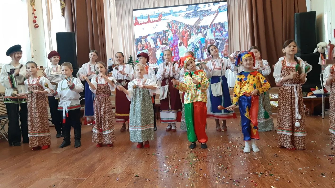 В программе были народные танцы, игра на шумовых инструментах, исполнение колядок и задорных частушек. Юные артисты с энтузиазмом погрузились в атмосферу народных гуляний, заражая своим настроением всех присутствующих.