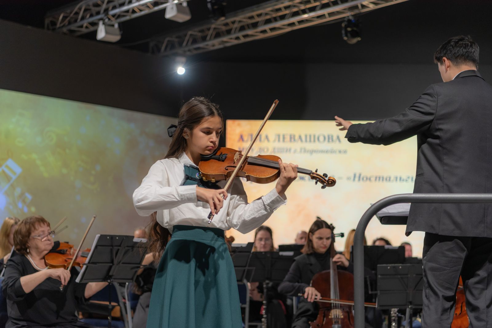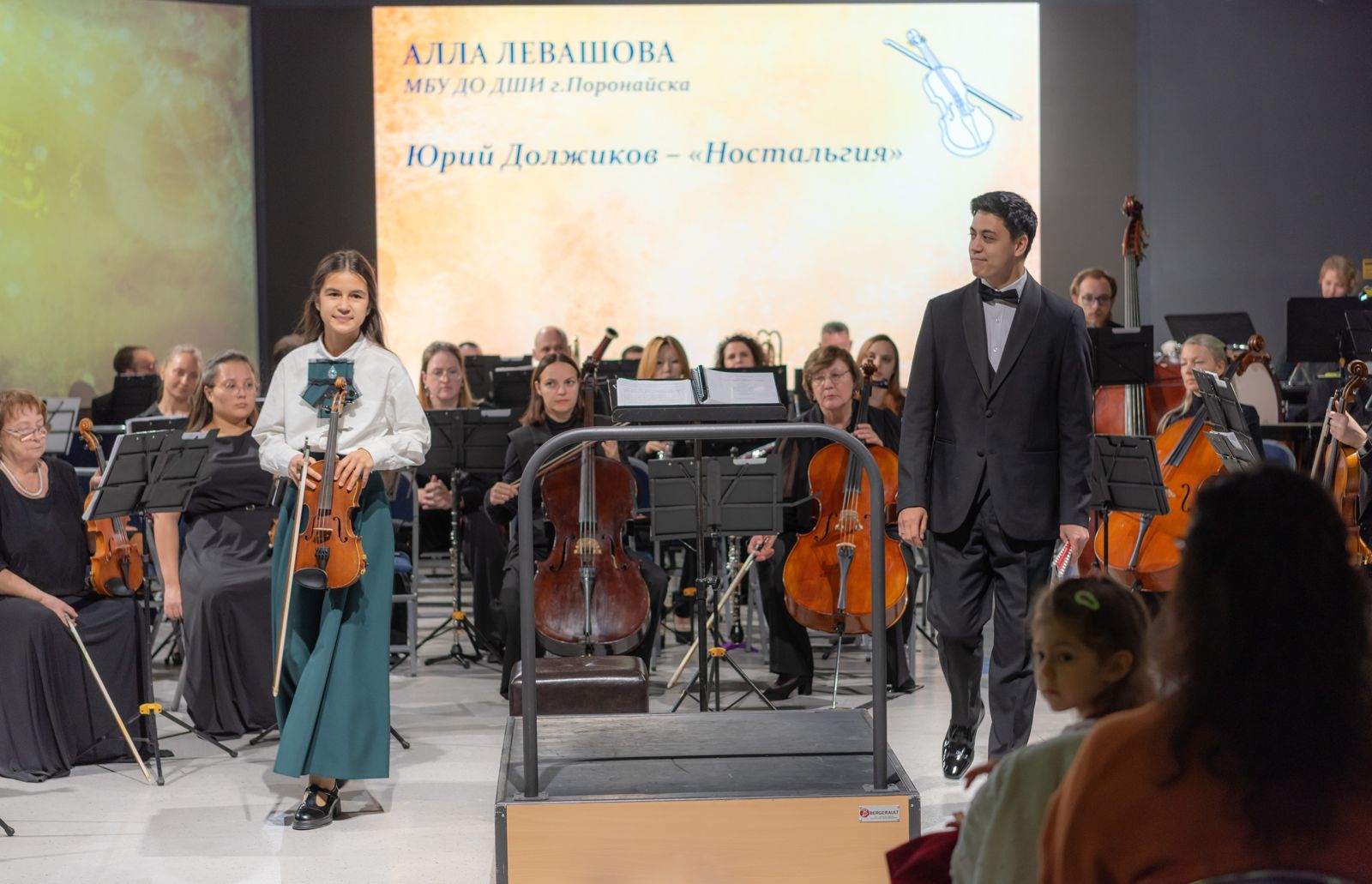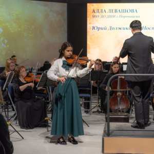 С Южно-Сахалинским симфоническим оркестром, солисткой выступила обучающаяся Детской школы искусств г. Поронайска – Левашова Алла (скрипка), преподаватель Кормнова Елена Степановна.